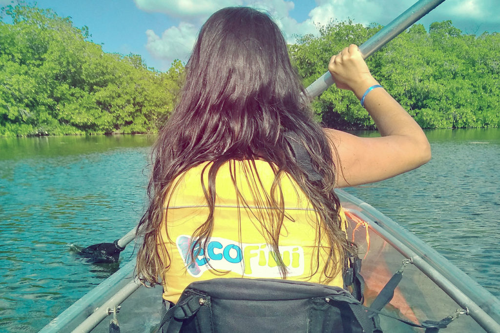 Um passeio diferente e San Andres é andar de caiaque transparente com a EcoFiwi.